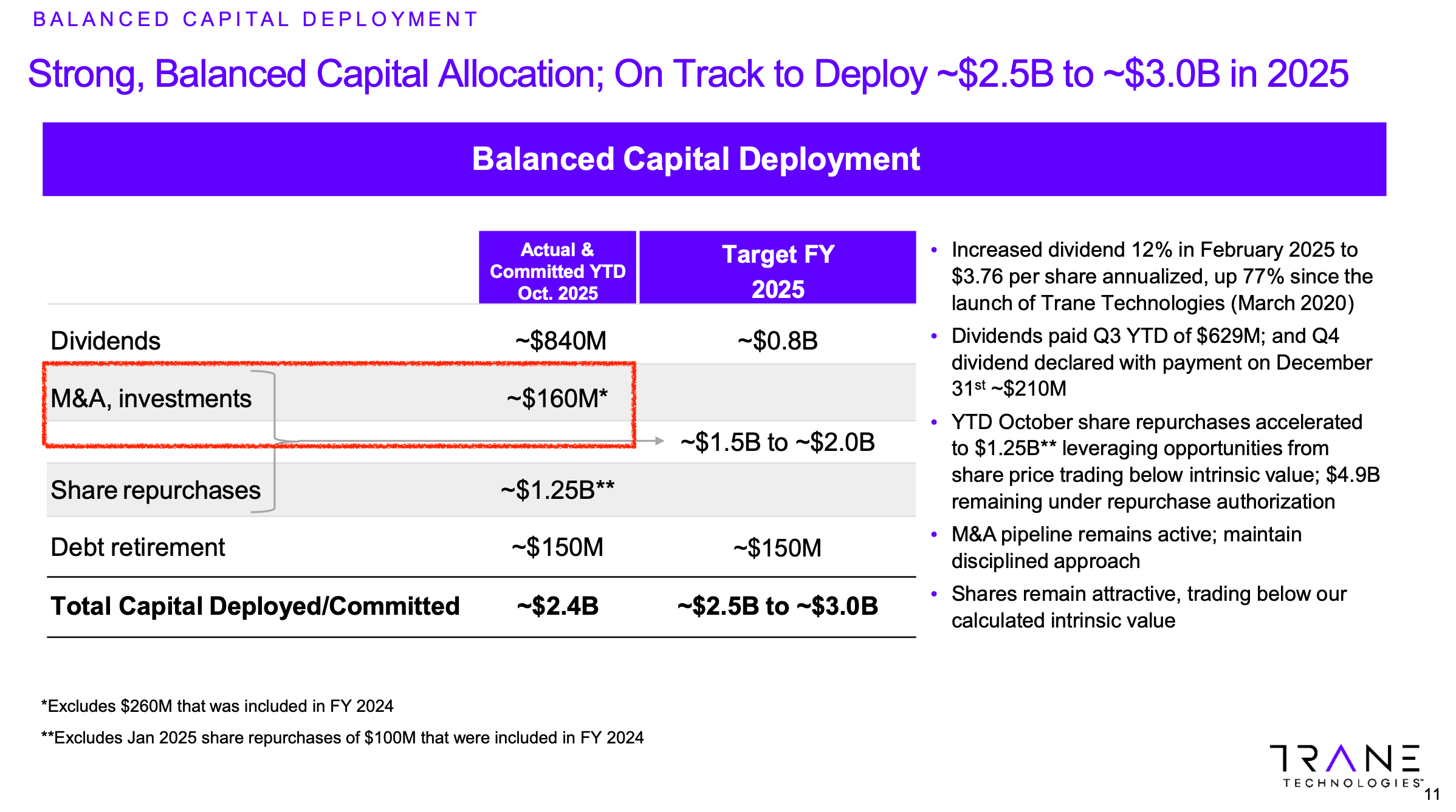 Trane also continues to lean heavily on M+A, earmarking significant capital (and potentially more in the year.